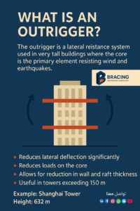 🔸 الـ Outriggers تنقل جزء من العزم الناتج إلى الأعمدة الخارجية.
