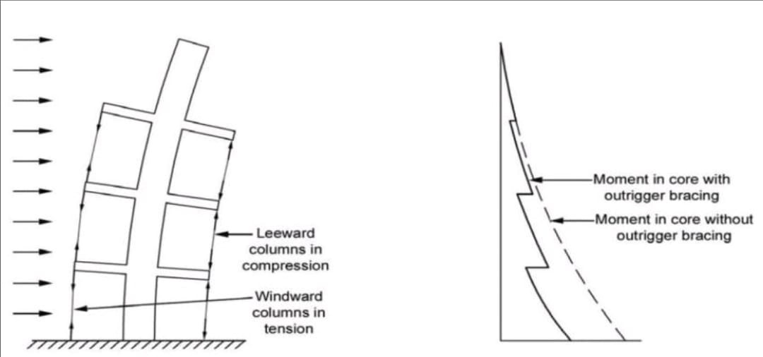 🔸 الـ Outriggers تنقل جزء من العزم الناتج إلى الأعمدة الخارجية.