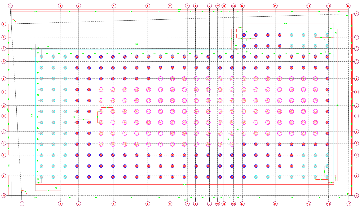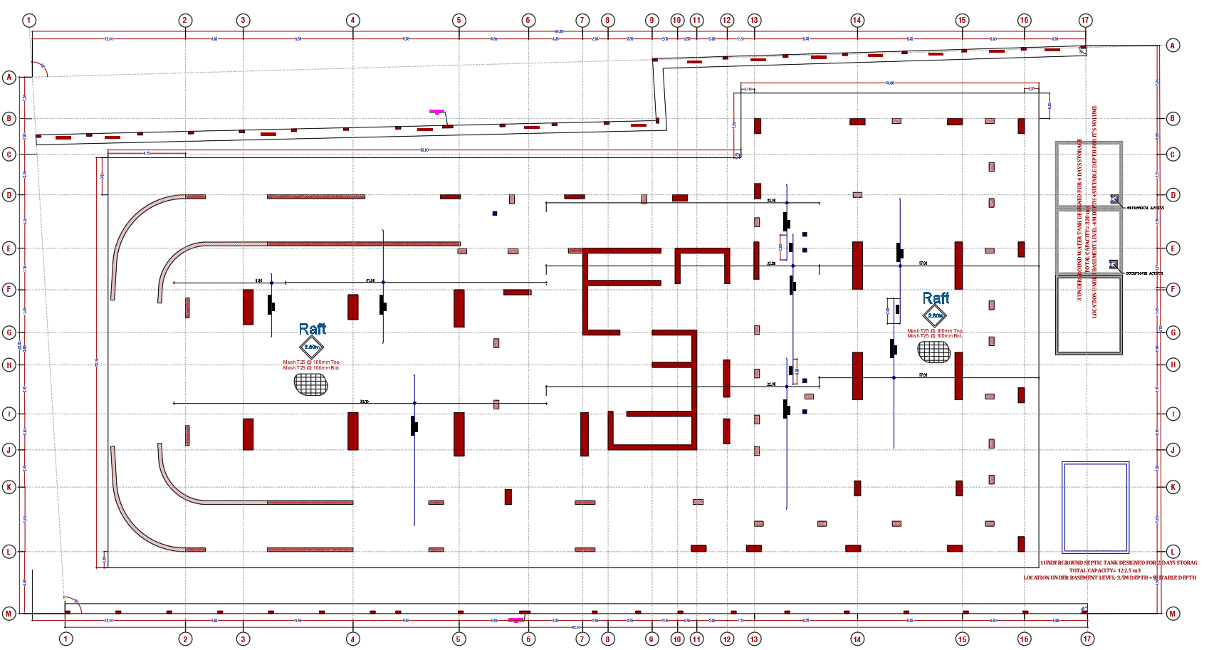 تم استخدام نظام Deep Foundation يتكون من Raft Foundation على Bored Piles بعمق يتراوح بين 30 إلى 40 مترًا.
