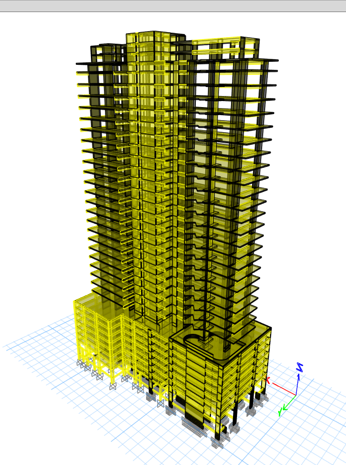 تم استخدام Modal Response Spectrum Analysis وفقًا للكود السعودي والكود الأمريكي SBC 301 و SBC 304 ACI 318, ASCE 7-16.